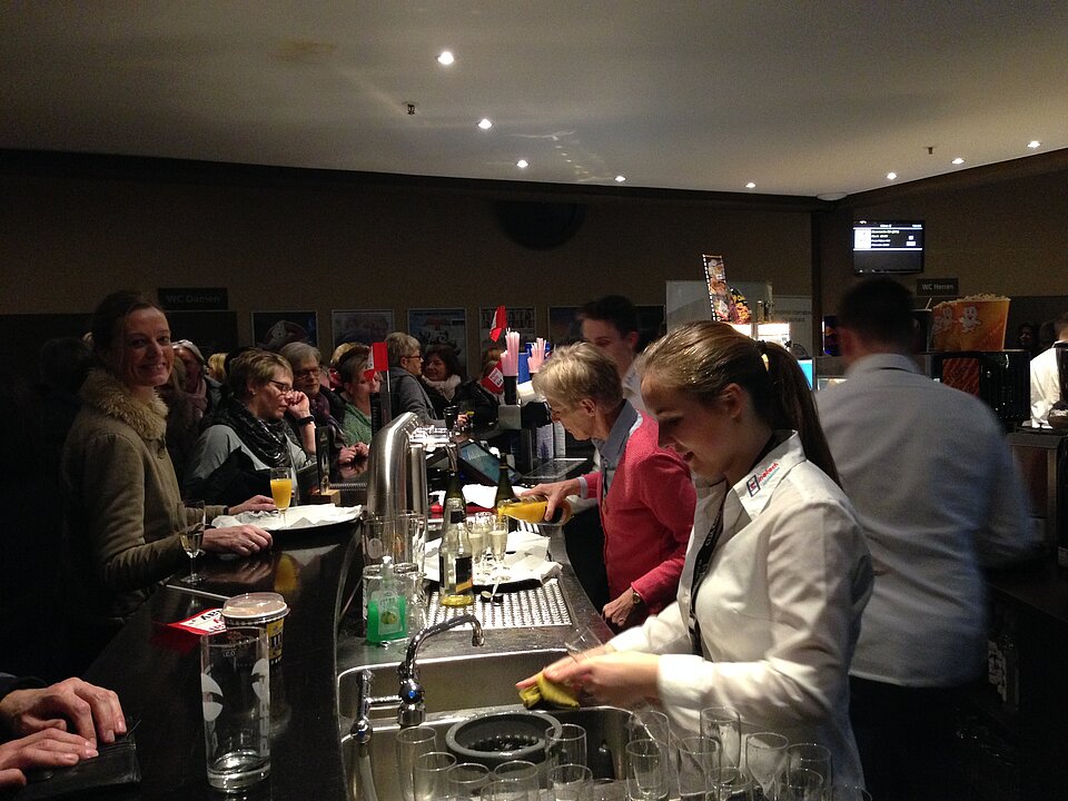 Traditionell eröffnete ein Sektempfang den Kinoabend und viele Besucherinnen und Besucher fanden sich bereits eine Stunde vor Beginn des Kinofilms ein, um noch ein Stündchen angeregt zu plaudern und den Abend zu genießen.