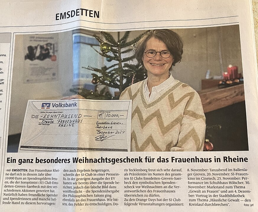 Die Erlöse der Veranstaltungen wurden dem Frauenhaus in Rheine und dem Verein