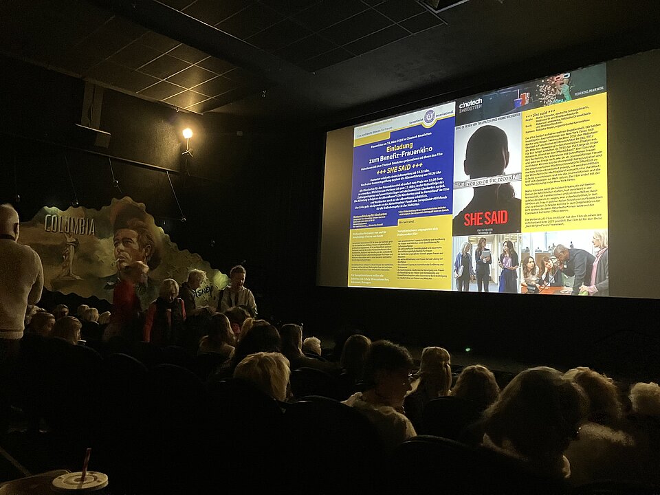 Zu sehen gab es den Film „She said“, einen bewegenden Film über zwei Journalistinnen, die mit ihren Recherchen den Weinstein-Skandal aufdecken. Ihr im Jahr 2017 veröffentlichter Artikel gibt den betroffenen Frauen erstmals eine Stimme und wird zum Ausgangspunkt für die #MeToo-Bewegung. Der toll umgesetzte Film war beeindruckend und bewegend und gab Anlass zu weiteren Diskussion und Gesprächen, auch nach dem Film.